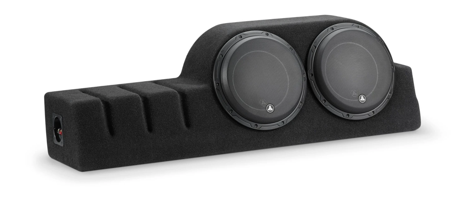 The Hard Data: Contains two 10W6v3-D4’s in a sealed enclosure. 1200 watt power handling. Wired for 4 ohm mono. Installs behind driver’s side rear seat. The seat folding function remains unaffected. Removal of rear storage bin is necessary for installation. Permanent modification of the folding floor extensions is required if these are to be used. If modification is not desired, floor extensions may also be removed for installation. Will not fit 2014-2016 models with power sliding rear window.
