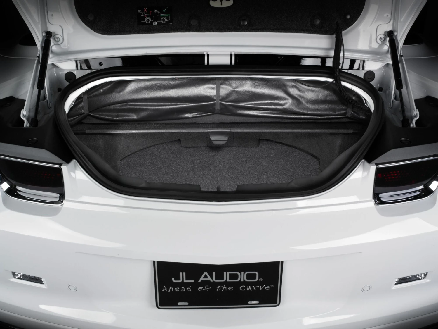 The Hard Data: Contains two 10W1v3-4 Subwoofers in individual sealed, down-firing enclosures. 600 watt power handling. Wired for 2 ohm mono. Installs under the rear deck and does not impede the vehicle’s convertible top operation or access to the under-floor battery compartment. Installation requires permanent modification to the trunk liner and cargo floor cover.