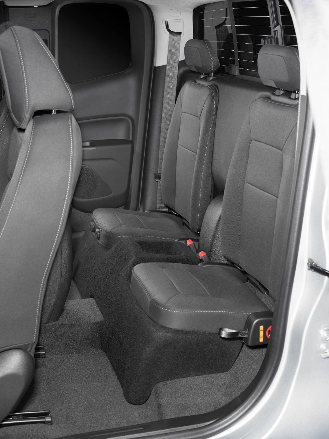 The Colorado/Canyon offers a great combination of real truck capabilities from within a compact platform. The Extended Cab version of this mid-size truck has limited back seat space for passengers and does not leave much room for a bulky subwoofer enclosure.