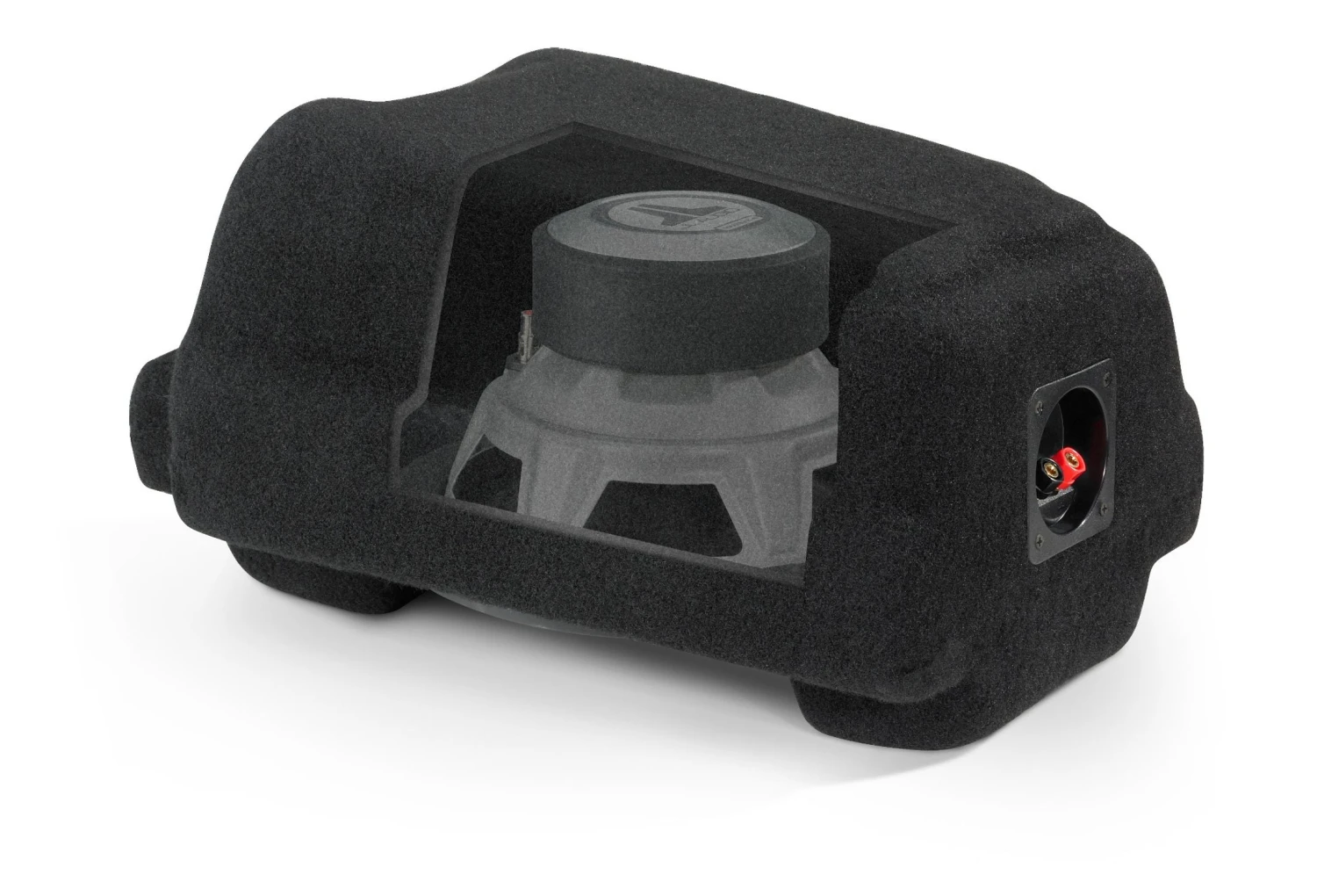 Who says pick-ups can’t have great sounding bass? This Stealthbox® installs inside the front center console and houses a 10-inch subwoofer. Undetectable to the eye, beautiful to the ear, this system delivers up-front, detailed performance with any style of music.